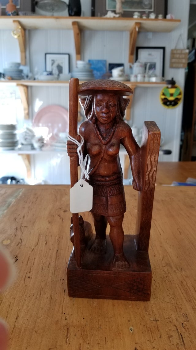 Teak Woman and Dog carving